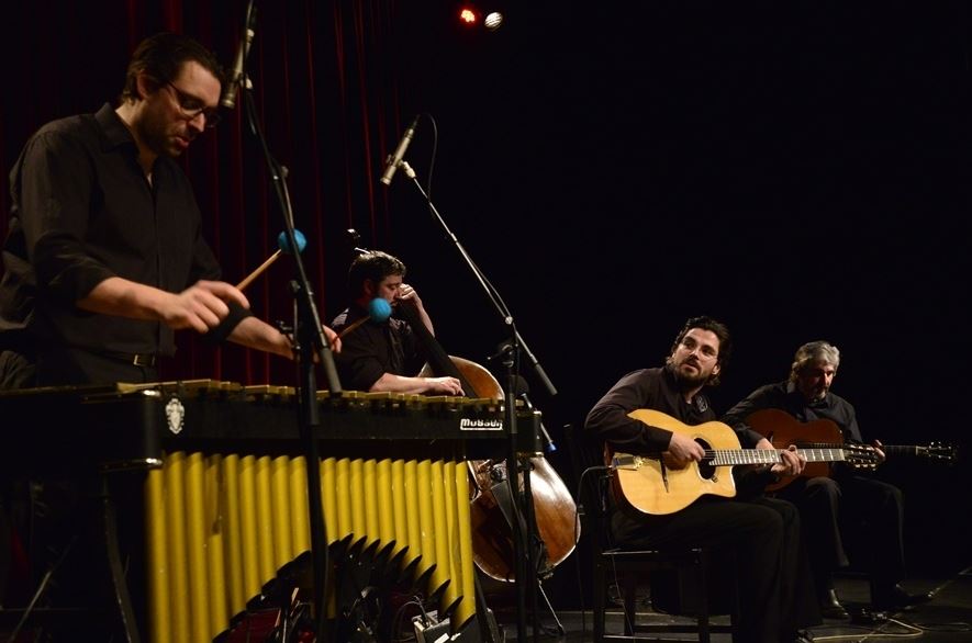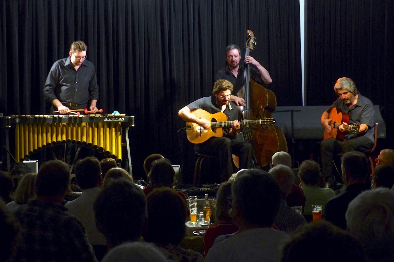 Die gemeinsame Formation von Joscho Stephan (Gitarre) und Matthias Strucken (Vibraphon) orientiert sich musikalisch an dem Großmeister des „Gypsy Swing“, dem Gitarristen Django Reinhardt, sowie dem legendären Jazz-Vibraphonisten Milt Jackson. Natürlich fragt man sich, ob man die Stile dieser beiden herausragenden Jazzlegenden ohne weiteres miteinander verbinden kann.